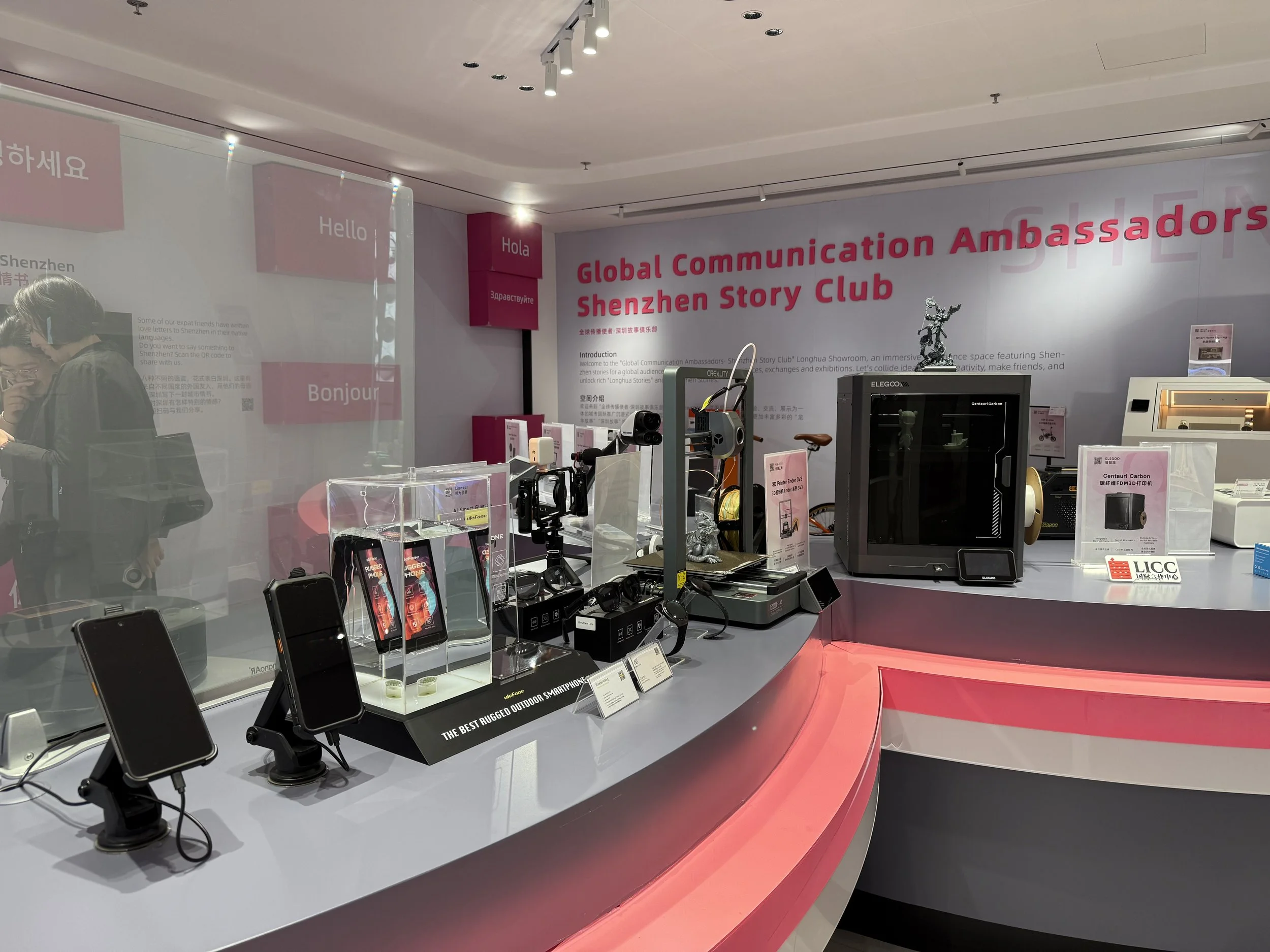 En Europa, un centro público muestra startups digitales. En Longhua, exponen mesas de ebanistas, cerámica, hardware, textil, piezas mecanizadas y productos de alta tecnología. Todo junto, sin complejos. “Aquí no diferenciamos tanto entre artesanía e industria.” (Equipo del LICC)